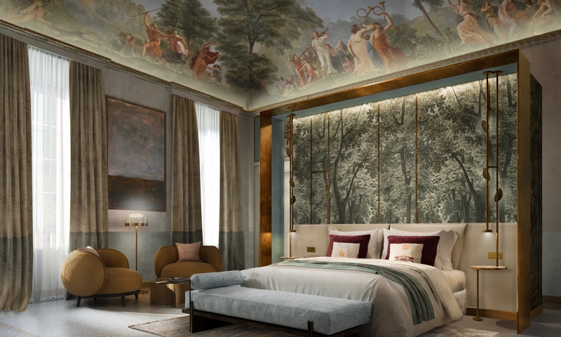 The first property, Palazzo Sozzini Malavolti, is located in Siena, Tuscany. This hotel will feature 38 rooms and is situated near Piazza del Campo. The building is a historic palazzo, and the renovation will preserve its original art and architectural elements, including 19th-century frescoes. The property will feature a spa and interiors that evoke the craftsmanship of Tuscany.