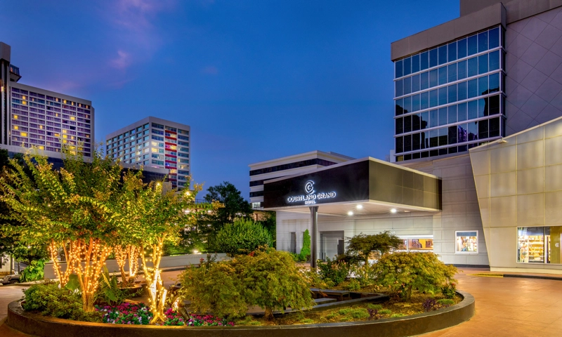 The hotel is situated near key Atlanta locations such as State Farm Arena, Georgia World Congress Center, Mercedes-Benz Stadium, and Centennial Olympic Park. Amenities at the Courtland Grand Hotel include large floor-to-ceiling windows in guest rooms, complimentary WiFi, a 24/7 fitness center, and an indoor heated pool. The hotel offers nearly 100,000 square feet of event space, including a 15,000-square-foot Grand Ballroom and over 55 meeting rooms, with capacity for events ranging from 5 to 1,200 guests.