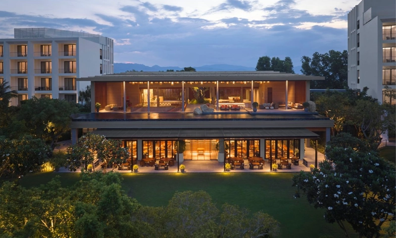 The resort’s design incorporates Asian-inspired elements, influenced by the five natural elements: wood, fire, earth, metal, and water. The property includes over 1,000 species of indigenous flora. Design studios AND, SUPER POTATO, and PIA developed the resort’s architecture.