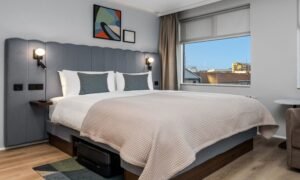 The building will be fully electric and powered by renewable energy to offer carbon-neutral stays. It will feature studios and suites alongside a cafe, bar, gym, and meeting spaces.