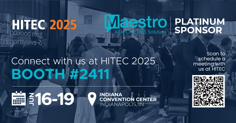 Maestro PMS will showcase the latest enhancements to its industry-defining property-management system in Booth #2411 at HITEC North America 2025, to be held June 16 to 19 at the Indiana Convention Center in Indianapolis. As a platinum sponsor of the premier technology event, Maestro will display its full selection of offerings, including its popular Guest Experience Management System (GuestXMS), in-demand embedded payments solution MezzoPay with unique integration to Silverware POS, newly enhanced Spa Management module, and the much-anticipated Maestro Touch — a powerful new feature of Maestro PMS designed to revolutionize the front desk user experience. Attendees can also preview powerful updates to the Front Desk and Sales & Catering systems, designed to boost operational speed, improve data visibility, and simplify complex workflows for staff.