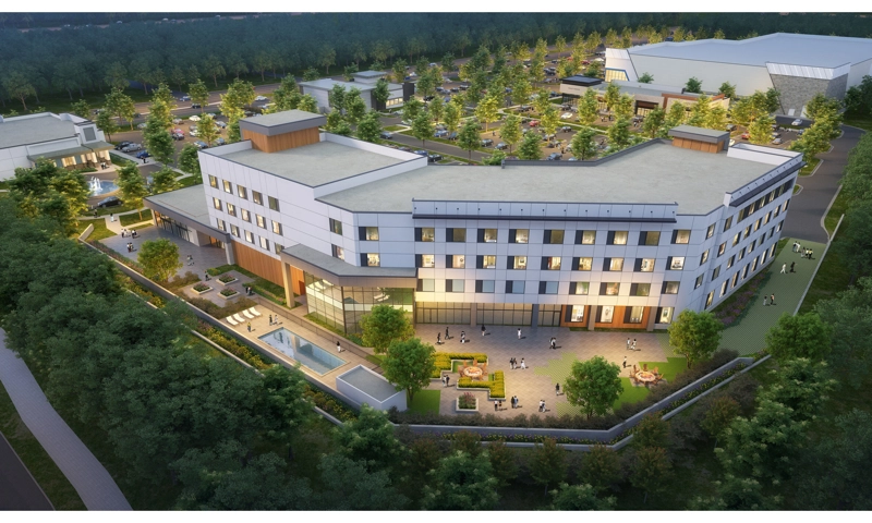 The AC Hotel will include 126 rooms, a full-service restaurant and bar, 4,500 square feet of meeting and event space, and a dedicated wedding suite. The outdoor area will feature a heated pool, waterfall wall, fire pits, and multiple seating areas. Additionally, two nationally recognized restaurants have signed leases to anchor the site.