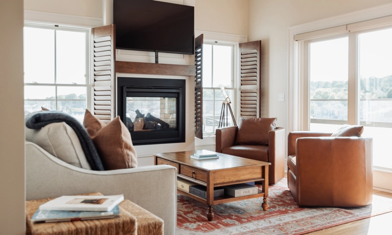 Located in the center of Mystic, The Stanton House aims to provide a blend of modern amenities and classic New England charm. The suites are designed to offer comfort and elegance, with features such as expansive balconies, fireplaces, and separate living areas. The Riverview Penthouses are highlighted for their panoramic views of the Mystic River and the iconic Bascule Bridge.