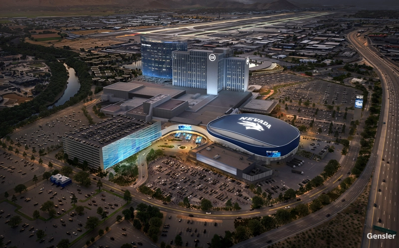 The redevelopment plan also includes a 2,800-space parking garage, a new community ice center, and future expansions for housing and hotel facilities. The arena and its related developments are projected to generate between $850 million and $1.135 billion in direct economic impact, with total benefits estimated between $1.34 billion and $1.8 billion over 28 years, according to a financial analysis conducted by Hunden Partners for the City of Reno.