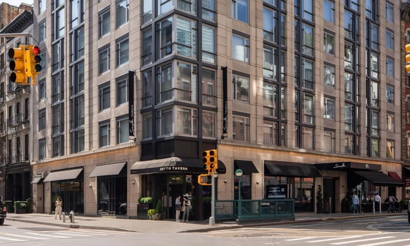 The Smyth Tribeca features 88 guestrooms and 12 suites, with amenities such as floor-to-ceiling windows, Carrara marble bathrooms, and private terraces. The hotel also includes two food and beverage venues operated by Mercer Street Hospitality: Smyth Tavern and Galerie Bar.