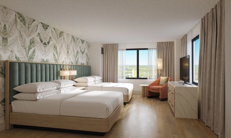 The rooms within the Solana Tower will carry soft wood tones, tropical patterns, and bold accents, setting a light and inviting tone for guests. Coupled with curated artwork and thoughtful details, the rooms aim to create a balance of relaxation and sophistication for the guests.