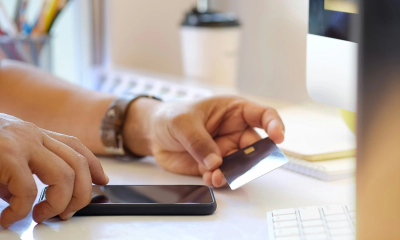 • Person making credit card payment on a phone